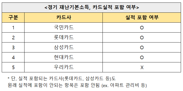 □ 경기도 기본재난소득, 사용실적 포함여부 (카드사별 상이)