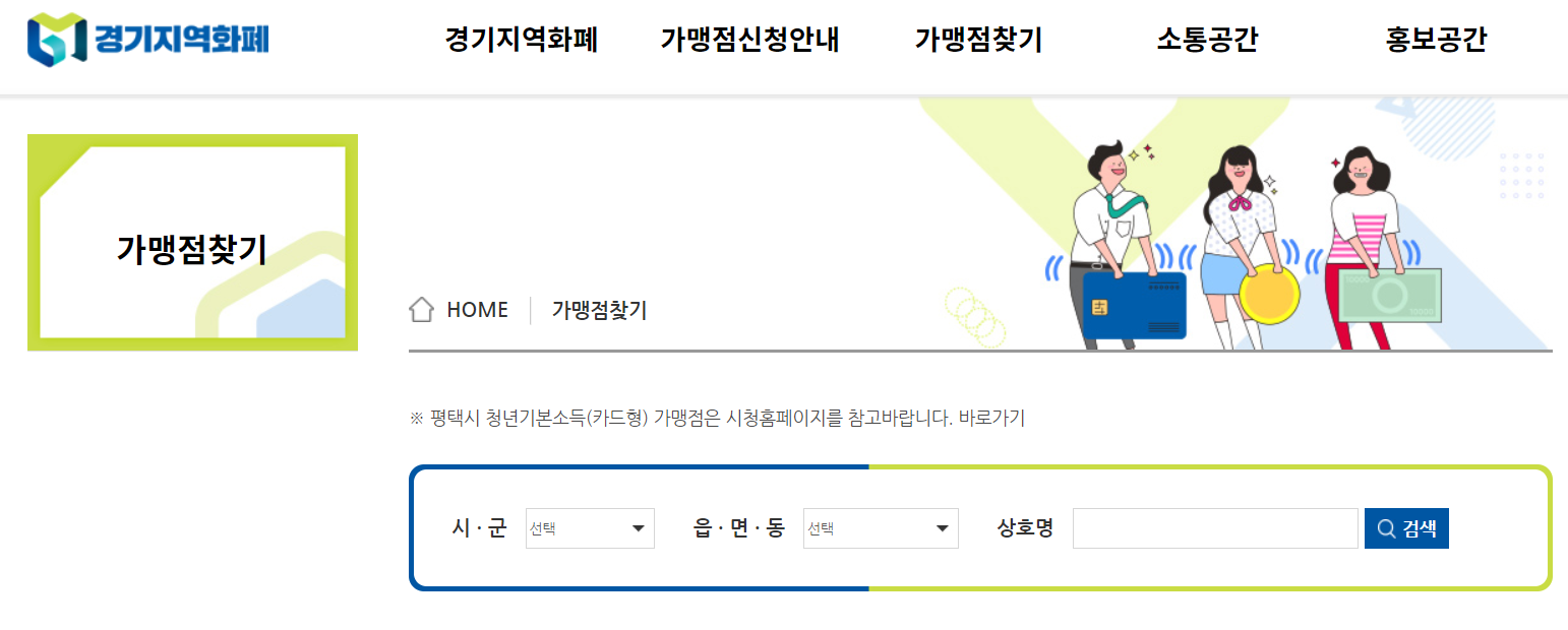 사용처는 우리동네 가맹점 찾기에서 확인 가능합니다.